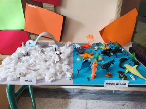 Στο μάθημα των αγγλικών οι μαθητές της Δ’ τάξης εργάστηκαν επί μία εβδομάδα σε project με θέμα “animal habitats” (βιότοποι ζώων). Αφού παρακολούθησαν στην τάξη σχετικά βίντεο και συνέλεξαν πληροφορίες, προχώρησαν στην κατασκευή τεσσάρων βιότοπων με υλικά που έφεραν από το σπίτι! Στο τέλος ακολούθησε σύντομη παρουσίαση στα αγγλικά με λεξιλόγιο που αποκτήθηκε κατά τη διάρκεια του project.